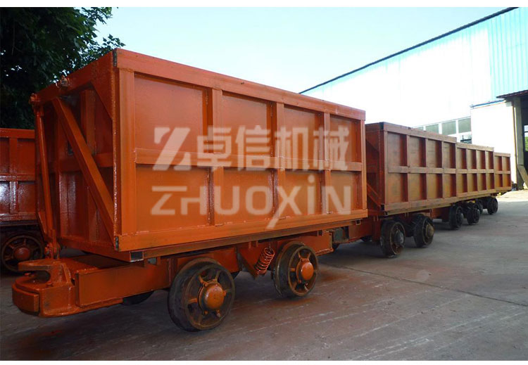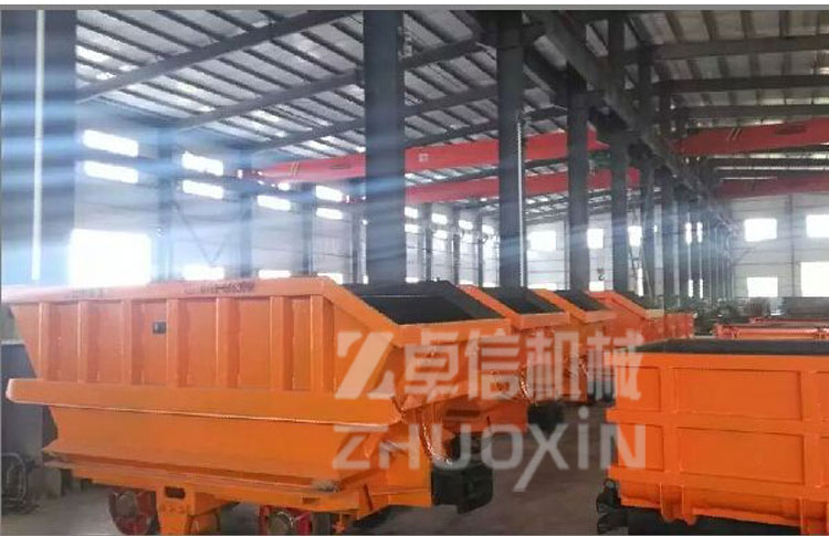 - 側(cè)卸式礦車主要適用于冶金、礦山巷道、煤礦、鐵路、公路遂道、水下涵洞、引水洞、導(dǎo)流洞、涵洞等隧道井巷工程掘進、施工、配套簡單、高效率出渣運輸設(shè)備。側(cè)卸式礦車由牽引車、絞車帶動,可與鑿巖鉆、立爪裝巖機和礦石溜開閘門放料系統(tǒng)配套結(jié)合裝料,礦石塊度不超過600毫米,根據(jù)礦車的負載容積,裝料后經(jīng)牽引動力引至(運行速度不超過1m/秒)專用曲軌卸料器。當(dāng)車箱翻至水平成最大卸料角度時,車門也開到最大程序。這時礦車卸料以全部完成。返回時,礦車通過曲軌門又自動關(guān)閉到位。側(cè)卸式礦車、曲軌側(cè)卸式礦車、側(cè)翻式礦車容量有2立方、3立方、4立方、6立方、8立方的容積。側(cè)卸式礦車是一種高效、自卸載的運輸設(shè)備,本身無能力,需與牽引機車或提升絞車配套使用。該車適用于礦山、隧道、工程建設(shè)等部門的坑道、室內(nèi)和露天軌道運輸作業(yè),軌距為600mm、762mm、900mm三種,供用戶選擇。該車適宜裝載塊度在500mm以上的礦巖和砂土,裝載塊狀物料時,其自由跌落高度應(yīng)小于1m(距車箱頂面)。側(cè)卸式礦車是代替最古老式的翻斗式礦車的礦山運輸工具,它綜合了它的簡單又方便,加大了它的貯存量,重量輕不笨重交靈活,簡單也就毛病少,特點是能自卸料。由軌道牽引機車或卷揚機牽引行走,只能在卸載處做好的曲軌卸載平臺上,向設(shè)定的一面卸載。在車廂的一側(cè)用較軸與車架相連,另一側(cè)箱門上裝有卸載輥輪。卸載時,當(dāng)輥輪沿曲軌斜坡過渡裝置在卸載曲軌上坡段的上行,致使車廂傾斜,活動側(cè)門繞銷軸轉(zhuǎn)動被拉開而開始卸載。當(dāng)輥輪沿傾斜卸載曲軌下坡運行,車廂靠自生重量自動下降復(fù)位到關(guān)閉側(cè)門。要注意的是當(dāng)側(cè)曲軌側(cè)卸式礦車從井底提升到卸載平臺時,提升卷揚機要放慢速度上斜坡卸載平臺,使其平穩(wěn)卸載。中煤集團生產(chǎn)的單側(cè)曲軌側(cè)卸式礦車的優(yōu)點是比翻斗式礦車和固定式礦車容積更大,自動平穩(wěn)卸載,由于這種卸載方式自身的特點,曲軌卸載空間小,一般只要5.2米長,卸載傾角 仍可達到55度,有效的節(jié)省了井巷的開拓空間和縮小了硐室尺寸。卸載距離短,煤倉和車場的掘進體積只有其它礦車的三分之一;由于卸載曲軌是對稱的,可實現(xiàn)側(cè)卸式礦車的雙向進行卸載。側(cè)卸式礦車適用范圍側(cè)卸式礦車適用于井下或地面開采的金屬礦山(或礦石性質(zhì)及開采方式與其相類似的其他礦山)沿地下巷道及地面工作場地運輸?shù)V石或其他物類。本礦車與其它底卸式礦車相比,具有運行平穩(wěn),對電機車和牽引車沖擊力小,因此,可延長其使用壽命。該車堅固耐用,維修方便,可雙向卸載,卸載速度高等。側(cè)卸式礦車結(jié)構(gòu)組成側(cè)卸式礦車有以下部件組成:1.車箱、2.車底架、3.輪軸、4.卸載輪、5.支撐彈簧、6.緩沖橡膠彈簧與碰頭等組成。其中車箱與車底架的聯(lián)接采用鉸鏈形式,使礦車在過卸載站時能開啟一定的角度以便礦石能順利卸下。31、車箱的前、后端板和側(cè)板均采用12mm厚的16Mn板焊接而成,在車箱四周外側(cè)采用槽形鋼板加固;翼板分別焊接在左、右側(cè)板上,上方用角鋼焊接成口字形,而且角鋼上方 和槽形鋼板相連,以便能使車箱在極端惡劣的工作環(huán)境下也不致于損壞。2、車底架。底板采用25mm厚的鋼板,在底板下面用角鋼和鋼板焊接,使底板足以能經(jīng)受住裝礦時礦石對底板的沖擊力。3、輪軸。輪軸由車軸、車輪和橡膠彈簧座組成。4、卸載輪。礦車卸礦時用,當(dāng)?shù)V車過卸載站時,卸載輪便開始工作,它沿曲軌滾動從而使礦車底板打開,卸完礦石后再使底板閉合,重新回復(fù)到裝礦狀態(tài)。5、緩沖橡膠彈簧與碰頭。緩沖與碰頭安裝在礦車兩頭,主要由緩沖橡膠彈簧、碰頭、插銷和單環(huán)鏈組成。它能使礦車之間緩和并削減沖擊力,延長車輛使用壽命。6、支撐彈簧。側(cè)卸式礦車相關(guān)參數(shù)容積:1.6m3軌距:600軸距:800C輪徑:350D牽引高度:320h額定牽引力:60KN卸載角:≥42°裝載量:4000KG外型尺寸:(長*寬*高)2500*1200*1300。側(cè)卸式礦車售后服務(wù)及交付說明1、側(cè)卸式礦車性價比說明:同產(chǎn)品質(zhì)量條件下,我公司不以降低性能、更改產(chǎn)品零部件為代價,給出最低最實在的價格。(可根據(jù)客戶要求進行產(chǎn)品的生產(chǎn)配置)2、側(cè)卸式礦車交貨說明:按供貨期交貨,若有特殊情況,需提前交貨的,我公司在有限的范圍內(nèi)將會組織人員加大生產(chǎn)力度、實行生產(chǎn),安裝,調(diào)試,包裝等工藝,力求滿足貴公司要求.3.側(cè)卸式礦車售后服務(wù)范圍:產(chǎn)品保修期為1年,在保修期內(nèi)產(chǎn)品屬質(zhì)量問題的我公司給予最快捷的維修,無任何費用,在保修期外需要更換零部件的,我公司只收取成本.山東卓信機械(官網(wǎng)http://www.jnzhuoxin.com)秉承山東人的豪爽與實誠,誠邀各位專家、領(lǐng)導(dǎo)來我公司考察、指導(dǎo)、賜教并期盼與您真誠合作,“追求卓越”永遠是我們的主題,我們將勵精圖治,再創(chuàng)高效,力爭以先進的技術(shù),優(yōu)良的產(chǎn)品質(zhì)量,為煤礦企業(yè)提供多方位的服務(wù)。