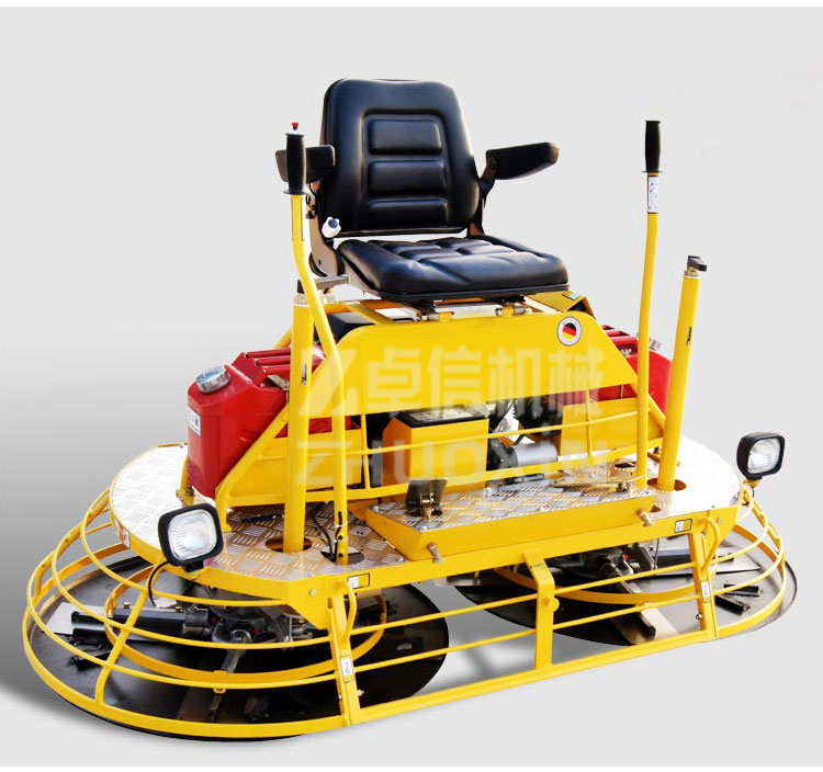 - 座駕式抹光機(jī)用于混凝土地面的提漿、壓實(shí)、抹平、抹光。相對(duì)于手扶式抹光機(jī),效率極高。zmjt038座駕式抹光機(jī)具有以下特點(diǎn)1.駕駛型操作,大大減輕了勞動(dòng)強(qiáng)度,提高工作效率。2.雙刀盤,對(duì)地面有更好的壓實(shí)效果。3.機(jī)械式轉(zhuǎn)向操作系統(tǒng),反應(yīng)靈敏,操作輕松、舒適。4.可同時(shí)安裝兩只抹盤,進(jìn)行快速提漿。5.裝備大馬力點(diǎn)啟動(dòng)發(fā)動(dòng)機(jī),提供強(qiáng)勁可靠的動(dòng)力。6.控制螺桿可調(diào)整葉片角度。7.抹光刀支撐臂,選用經(jīng)嚴(yán)格熱處理的超大直徑碳結(jié)構(gòu)鋼,可適應(yīng)個(gè)別工人的野蠻操作。座駕式抹光機(jī)技術(shù)參數(shù)型號(hào) FMZ-S36工作 功率 24hp/3600rpm操作方式 駕駛式油箱容積 20L工作寬度 75in.潤(rùn)滑油量 1.8L工作速度 0-135rpm燃油消耗量 313g/kWh抹刀數(shù)量 8總長(zhǎng) 1940mm抹刀尺寸 350x150mm總寬 990mm固定孔距 4.75 in總高 1050mm發(fā)動(dòng)機(jī) 包裝尺寸 1950x1010x1070mm型號(hào) HONDA,GX670類型 汽油機(jī),空冷4沖程,OHV,雙缸工作重量 300kg★駕駛式操作,大大降低了勞動(dòng)強(qiáng)度,提高了工作效益,施工效率是普通抹光機(jī)的5-8倍。單人操作,降低施工成本。★雙刀盤工作,重量更大,對(duì)地面具有更好的壓實(shí)效果,大大提高了路面的密實(shí)度。施工功效比手扶式抹光機(jī)更高★可同時(shí)安裝兩張?zhí)釢{圓盤,進(jìn)行快速提漿。★機(jī)械式轉(zhuǎn)向操作系統(tǒng),反應(yīng)靈敏,控制輕松自如,操作靈活舒適。★裝備世界知名品牌本田GX690 汽油大馬力電起動(dòng)發(fā)動(dòng)機(jī),提供強(qiáng)勁可靠的動(dòng)力。★腳踏式安全切斷開關(guān),可迅速關(guān)閉發(fā)動(dòng)機(jī),提供最大的安全保障。★腳踏油門控制,反應(yīng)靈敏,提速快捷.★汽油發(fā)動(dòng)機(jī)中置設(shè)計(jì)和雙聯(lián)軸器,使整機(jī)具有良好的工作性能。★配備了14升水箱、油箱可供較長(zhǎng)時(shí)間連續(xù)作業(yè).★噴水與前后照明裝置,對(duì)施工更有幫助。★用于水泥混凝土表面的提漿、抹平,抹光。廣泛應(yīng)用于高標(biāo)準(zhǔn)公路、倉(cāng)庫(kù),場(chǎng)地等水泥混凝土路面及地坪的施工。★可選裝行走裝置,工地移動(dòng)更方便。座駕抹光機(jī)操 作 控 制 要 領(lǐng)操作員就位后,左腳踩下熄火踏板后右腳稍踩油門控制板。啟動(dòng)發(fā)動(dòng)機(jī),雙手握操縱桿稍作低速運(yùn)轉(zhuǎn)(怠速)后加大油門,進(jìn)行正常作業(yè)。操縱桿向前推,機(jī)器向前走,向后拉機(jī)器向后退。右手拉同時(shí)左手推,機(jī)器順時(shí)針轉(zhuǎn)。左手拉同時(shí)右手推,機(jī)器逆時(shí)針轉(zhuǎn)。雙手將操縱桿向右移,機(jī)器右行。雙手將操縱桿向左移,機(jī)器左行。松開右腳踏板,機(jī)器怠速,刀片停止旋轉(zhuǎn)。松開左腳,機(jī)器熄火。關(guān)閉發(fā)動(dòng)機(jī)電門,結(jié)束操作。裝備國(guó)際名牌汽油機(jī),名牌品質(zhì)保證,性能優(yōu)越,啟動(dòng)容易;變速箱大模數(shù)設(shè)計(jì),鋁合金箱體,免維護(hù),使用壽命長(zhǎng);抹光刀支撐臂,選用經(jīng)嚴(yán)格熱處理的超大直徑碳結(jié)構(gòu)鋼,可適應(yīng)個(gè)別工人的野蠻操作;科學(xué)設(shè)計(jì)的離心式離合傳動(dòng)機(jī)構(gòu),傳動(dòng)扭矩大,使用壽命長(zhǎng),維護(hù)很方便;低重心設(shè)計(jì),使機(jī)器運(yùn)行平穩(wěn),靈活;表面噴塑,漂亮美觀,防銹耐蝕。該產(chǎn)品已出口美國(guó)、法國(guó)、加拿大、印尼、俄羅斯、越南、澳大利亞、韓國(guó)、伊朗等多個(gè)國(guó)家,獲得客戶的一致好評(píng)。因產(chǎn)品生產(chǎn)批次、具體型號(hào)不同,以上圖片僅供參考,詳情可聯(lián)系我們的銷售人員進(jìn)行具體核實(shí)。座駕抹光機(jī)售后服務(wù)及交付說(shuō)明1、座駕抹光機(jī)性價(jià)比說(shuō)明:同產(chǎn)品質(zhì)量條件下,我公司不以降低性能、更改產(chǎn)品零部件為代價(jià),給出最低最實(shí)在的價(jià)格。(可根據(jù)客戶要求進(jìn)行產(chǎn)品的生產(chǎn)配置)2、座駕抹光機(jī)交貨說(shuō)明:按供貨期交貨,若有特殊情況,需提前交貨的,我公司在有限的范圍內(nèi)將會(huì)組織人員加大生產(chǎn)力度、實(shí)行生產(chǎn),安裝,調(diào)試,包裝等工藝,力求滿足貴公司要求.3.座駕抹光機(jī)售后服務(wù)范圍:產(chǎn)品保修期為1年,在保修期內(nèi)產(chǎn)品屬質(zhì)量問(wèn)題的我公司給予最快捷的維修,無(wú)任何費(fèi)用,在保修期外需要更換零部件的,我公司只收取成本.山東卓信機(jī)械(官網(wǎng)http://www.jnzhuoxin.com)秉承山東人的豪爽與實(shí)誠(chéng),誠(chéng)邀各位專家、領(lǐng)導(dǎo)來(lái)我公司考察、指導(dǎo)、賜教并期盼與您真誠(chéng)合作,“追求卓越”永遠(yuǎn)是我們的主題,我們將勵(lì)精圖治,再創(chuàng)高效,力爭(zhēng)以先進(jìn)的技術(shù),優(yōu)良的產(chǎn)品質(zhì)量,為煤礦企業(yè)提供多方位的服務(wù)。