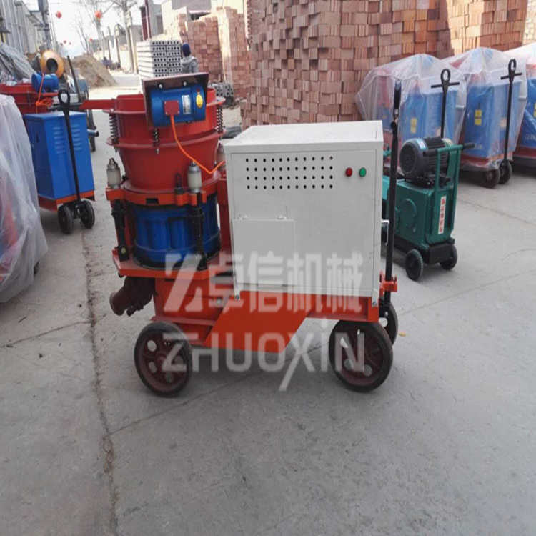 - PZ-7型噴漿機(jī)PZ-7型噴漿機(jī)是混凝土錨噴施工設(shè)備。它是目前濕噴、潮噴混凝土最理想的設(shè)備之一。分為普通與防爆型,廣泛用于隧道、涵洞、地下工程、煤礦井巷、水利水電工程的錨噴支護(hù)施工。PZ-7型噴漿機(jī)主要技術(shù)參數(shù)與特征:型號(hào): PZ-7生產(chǎn)能力m3/h: 7最大輸送距離:垂直15m;水平30m適用水灰比: 0.55-0.65速凝劑添加量:0-7%最大骨粒粒徑:15mm工作風(fēng)壓mpa: 0.3-0.6耗風(fēng)量m3/h: 8-10噴砂管內(nèi)徑mm:51/64上料高度m:1.3噴射機(jī)KW:7.5計(jì)量泵KW:0.75振動(dòng)電機(jī)KW:0.25整機(jī)質(zhì)量kg: 900外型尺寸mm:1900X1050X1300PZ-7型噴漿機(jī)是將水泥、水和骨料按設(shè)計(jì)比例拌和均勻,用濕式噴漿機(jī)壓送到噴頭處,再在噴頭上添加速凝劑并與風(fēng)匯合后后噴出。讓我們一起了解一下SSP-7濕噴機(jī)操作規(guī)范:1、每次濕噴前應(yīng)先將高壓風(fēng)打開(kāi),機(jī)器空轉(zhuǎn)幾分鐘,將機(jī)器和管路中的殘液和污物吹出,并檢查轉(zhuǎn)子料倉(cāng)是否嚴(yán)密、管路是否暢通;當(dāng)關(guān)閉主風(fēng)閥時(shí),系統(tǒng)風(fēng)壓顯示在0.5MPa 以上時(shí)方可開(kāi)機(jī)操作。2、用壓縮空氣或壓力水將所有待噴面吹凈,吹除待噴面上的松散雜質(zhì)或塵埃;保證濕噴速度適當(dāng),以利于砼的壓實(shí)。3、使噴嘴與受?chē)娒骈g保持適當(dāng)距離,濕噴角度盡可能接近90度,以便獲得最大的壓實(shí)力和最小的回彈;正確地掌握濕噴順序,不使角隅處及鋼筋背面出現(xiàn)蜂窩或砂囊。4、當(dāng)開(kāi)始或停止?jié)駠姇r(shí),給濕噴機(jī)司機(jī)以信號(hào),當(dāng)料流不能從噴嘴均勻噴出時(shí),也應(yīng)通知濕噴機(jī)司機(jī)停止作業(yè)。5、及時(shí)清除受?chē)娒嫔系纳澳一蛳麓沟捻牛员阒匦聺駠姡粷駠姽ぷ鹘Y(jié)束時(shí),認(rèn)真清洗噴嘴。6、待噴面的準(zhǔn)備工作在修理?yè)p壞了的結(jié)構(gòu)時(shí),首先要清除掉松散物質(zhì),用壓力水徹底沖洗,再將積水吹走。7、濕噴機(jī)的操作濕噴機(jī)的操作可影響回彈、砼的密實(shí)性和料流的均勻性。要正確地控制濕噴機(jī)的工作風(fēng)壓和保證噴嘴料流的均勻性。濕噴機(jī)處的工作風(fēng)壓應(yīng)根據(jù)適宜的濕噴速度而進(jìn)行調(diào)整,若工作風(fēng)壓過(guò)高,即濕噴速度過(guò)大,動(dòng)能過(guò)大,使回彈增加,若工作風(fēng)壓過(guò)低,壓實(shí)力小,影響砼強(qiáng)度,濕噴機(jī)的料流要均勻一致,以保證速凝劑在砼中均勻分布。8、噴嘴的操作:噴嘴與受?chē)娒骈g的距離:噴嘴與受?chē)娒娴淖罴丫嚯x一般為0.8~1m。噴頭距受?chē)娒嫣鼤r(shí),壓縮空氣會(huì)將剛“粘”在受?chē)娒嫔系捻虐韬土洗底撸勾止橇系幕貜椔试龃螅粷駠娊嵌龋簢婎^應(yīng)保持與受?chē)娒娲怪保羰車(chē)娒姹桓駯拧摻罹W(wǎng)覆蓋時(shí),可將噴頭稍加偏斜,但不宜小于70°。如果噴頭與受?chē)娒娴慕嵌冗^(guò)小時(shí),會(huì)形成砼物料在工作面上的滾動(dòng),出現(xiàn)凸凹不平的波形噴面,增加了回彈率,影響了所噴砼的質(zhì)量。在設(shè)有盲管的區(qū)段,必須正對(duì)盲管濕噴,使盲管后面形成透水空隙。在配有鋼筋網(wǎng)片的巖面濕噴時(shí),噴嘴應(yīng)靠近受?chē)娒妫⑴c垂直方向有一個(gè)小角度,使鋼筋后面的砼能濕噴得更加密實(shí),防止鋼筋后漏噴,以獲得較好的包裹效果;在濕噴內(nèi)部角隅時(shí),應(yīng)在兩個(gè)受?chē)娒鎶A角處,噴嘴沿角平分線方向進(jìn)行噴敷,隨著角隅已被填滿成一個(gè)曲面后,再向兩側(cè)壁面逐漸延伸,然后,按與壁面成90°的角度進(jìn)行噴敷,對(duì)外部角隅,可將噴嘴垂直地先對(duì)準(zhǔn)一個(gè)受?chē)娒鎳姺螅缓笤賴姺蠼怯绲牧硪粋?cè)。噴頭運(yùn)動(dòng)方式是噴嘴指向一個(gè)地點(diǎn)的時(shí)間不應(yīng)過(guò)久,因?yàn)檫@樣會(huì)增加回彈并難于取得均勻的厚度,好的噴敷方法是橫過(guò)砼面將噴嘴穩(wěn)定而系統(tǒng)地做圓形或橢圓形移動(dòng),噴嘴有節(jié)奏地做一系列環(huán)形移動(dòng)可形成均勻的產(chǎn)品和最少回彈,濕噴手所畫(huà)的環(huán)形圈應(yīng)為橫向40~60cm,高15~20cm。 濕噴應(yīng)分段、分部、分塊,(濕噴時(shí)分段長(zhǎng)度不超過(guò)6m,分部為先下后上,分塊大小為2m×2),噴頭應(yīng)作連續(xù)不斷的螺旋狀圓周運(yùn)動(dòng),螺旋直徑約為20~30m,后一圈壓前一圈三分之一,濕噴路線應(yīng)自上而下,呈“S”形運(yùn)行,如圖1所示。濕噴砼應(yīng)先邊墻、后拱部,砼濕噴走向如圖2所示9、濕噴厚度:濕噴砼對(duì)墻部一次噴層厚可達(dá)10cm 以上,拱部一次噴層厚可達(dá)7cm。影響噴層厚度的主要因素是砼的坍落度,速凝劑的作用效果和氣溫。一般8 cm左右的坍落度可獲得較厚的噴層,能保證砼在2min內(nèi)凝結(jié)的效果較好,作業(yè)面的氣溫需在15℃以上。10、分層濕噴對(duì)于新鮮濕噴砼,其抗拉強(qiáng)度和粘接強(qiáng)度都很低,一旦濕噴砼的自重大于其與受?chē)娒娴恼辰訌?qiáng)度時(shí),即出現(xiàn)下垂及脫落,因此需要分層濕噴,前后層濕噴的間隔時(shí)間為2~4小時(shí),一次濕噴厚度以濕噴砼不滑移,不墜落為度。11、表面整修濕噴面自然整平,不論從結(jié)構(gòu)強(qiáng)度和耐久性方面來(lái)講,都是可取的,進(jìn)一步追加整