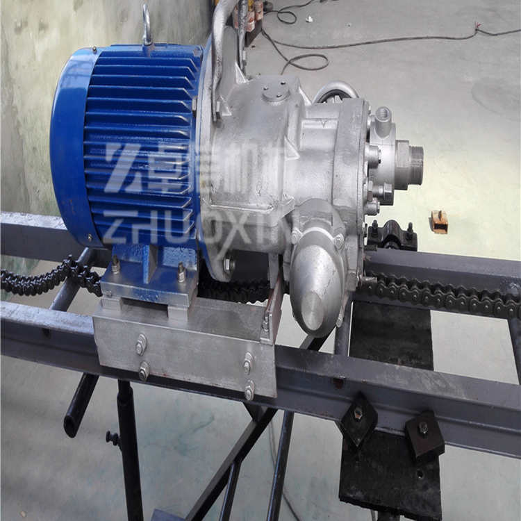 為了延長鉆頭的使用壽命及改善操作者的勞動(dòng)條件,采用水排粉即濕式鉆孔,在鉆孔作業(yè)中,只需操縱手輪,電鉆就可自行推進(jìn)和快速退架。