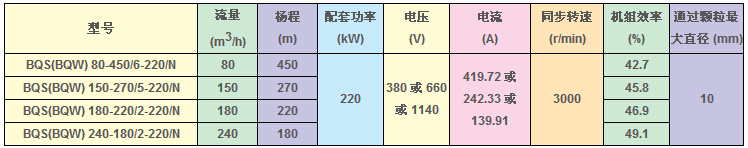 BQS(W)礦用隔爆型排污排沙潛水電泵技術(shù)參數(shù):