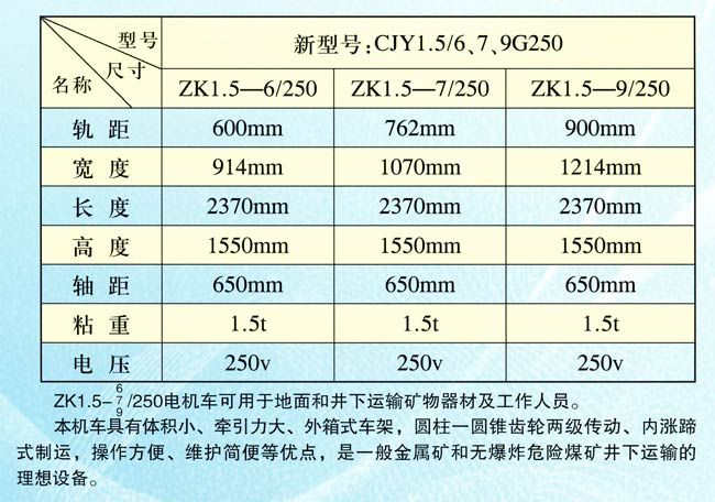 原型號ZK3-6、7、9/250-2型電機車主要技術(shù)參數(shù)